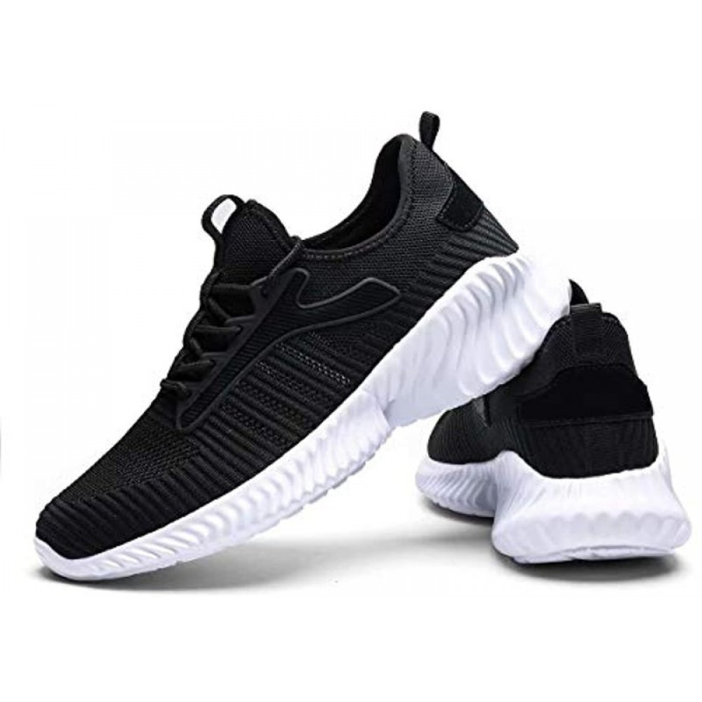 Mens Running Sneakers Slip On Walking Shoes Fashion Breathable Sneaker Mesh Soft Sole Casual Athletic Lightweight Black-White